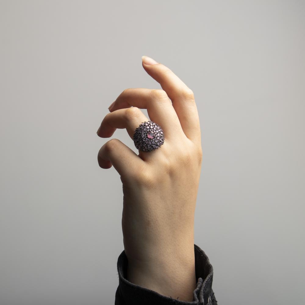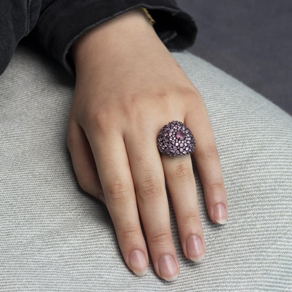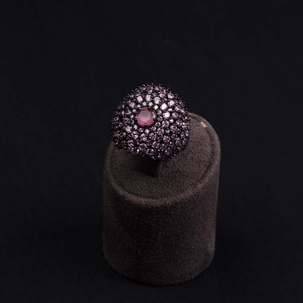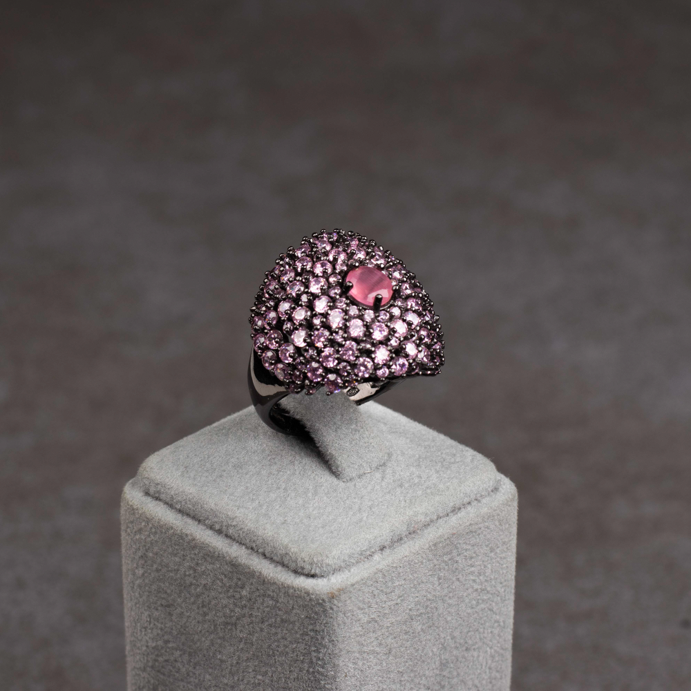 اختاري التميز والتألق مع خاتم فضة نسائي عيار 925 مطلي بالأسود بفصوص زركون وردية. تصميم يجمع بين الرقي والعصرية ليضفي لمسة من الأناقة الفريدة على إطلالتك.
