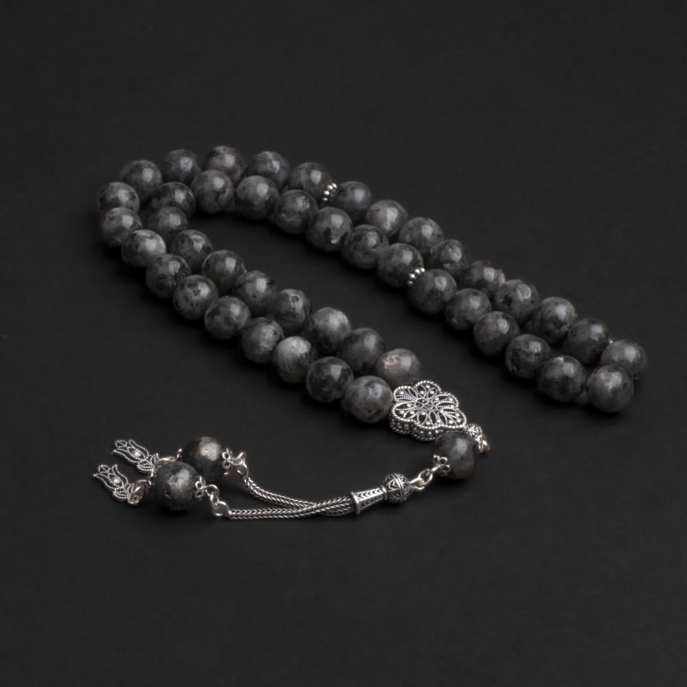 - حجر طبيعي فريد: يُبرز حجر اللافراكيت الطبيعي في تصميم السبحة بفضل متانته وصلابته ولمعانه الاستثنائي، كما يمنحها طابعًا قويًا يجعلها تدوم طويلًا مما يجعلها أفخم سبحة رجالية من فيرونا.