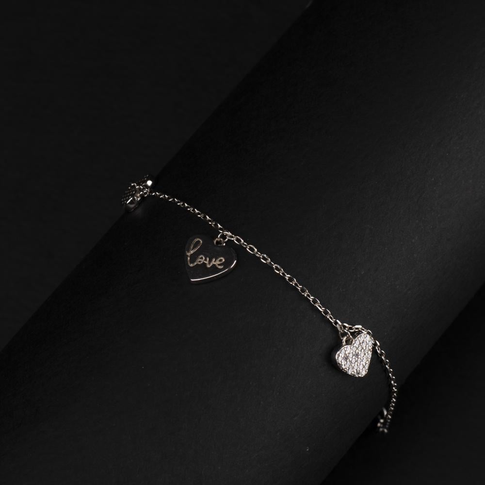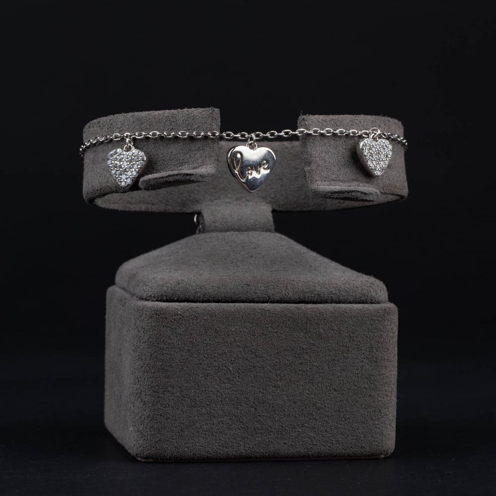 اكتشفي الفخامة مع اسوارة فضة بتصميم قلوب ثلاثية