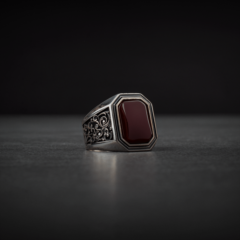 • جودة لا تضاهى: الخاتم مصنوع من الفضة الاسترليني عيار 925 بنقوش فاخرة، بينما تتميز السبحة بحبات عقيق طبيعي وشكة فضة أنيقة، مما يمنحك مزيجًا من الفخامة والصلابة.