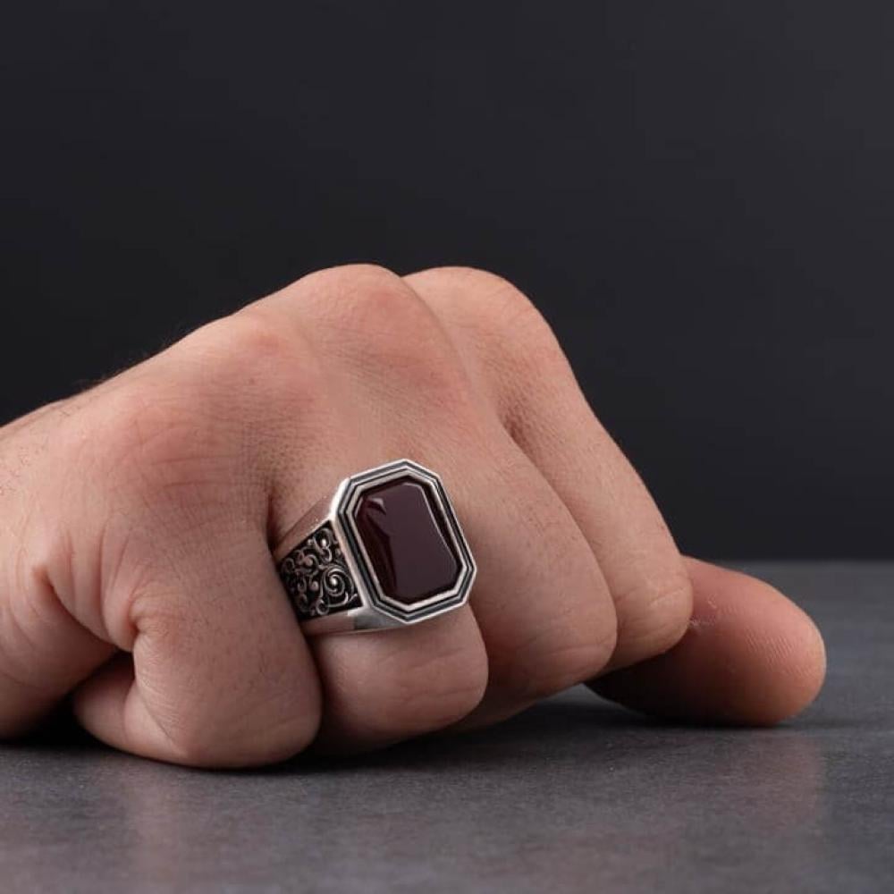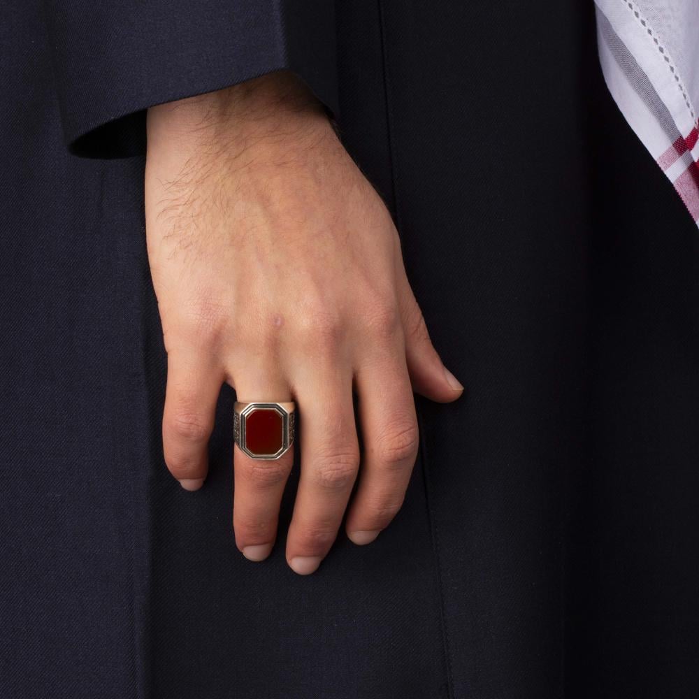 ✔ مزين بحجر عقيق أحمر طبيعي يضفي لمسة من الفخامة والجاذبية.