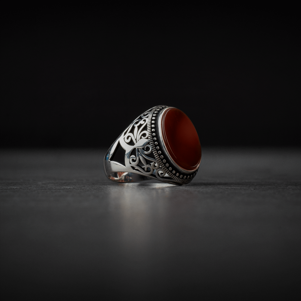✔ مزين بحجر عقيق أحمر طبيعي يضفي لمسة من الفخامة والجاذبية.