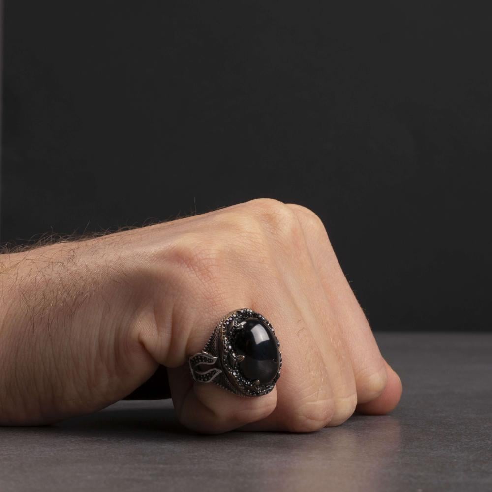 • الحجر: عقيق أسود طبيعي عالي الجودة.
