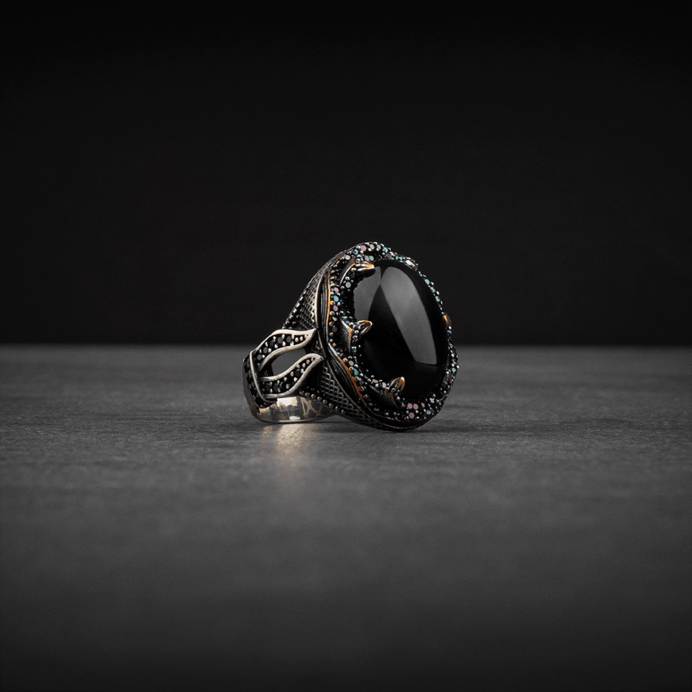 • الحجر: أونيكس أسود فاخر.