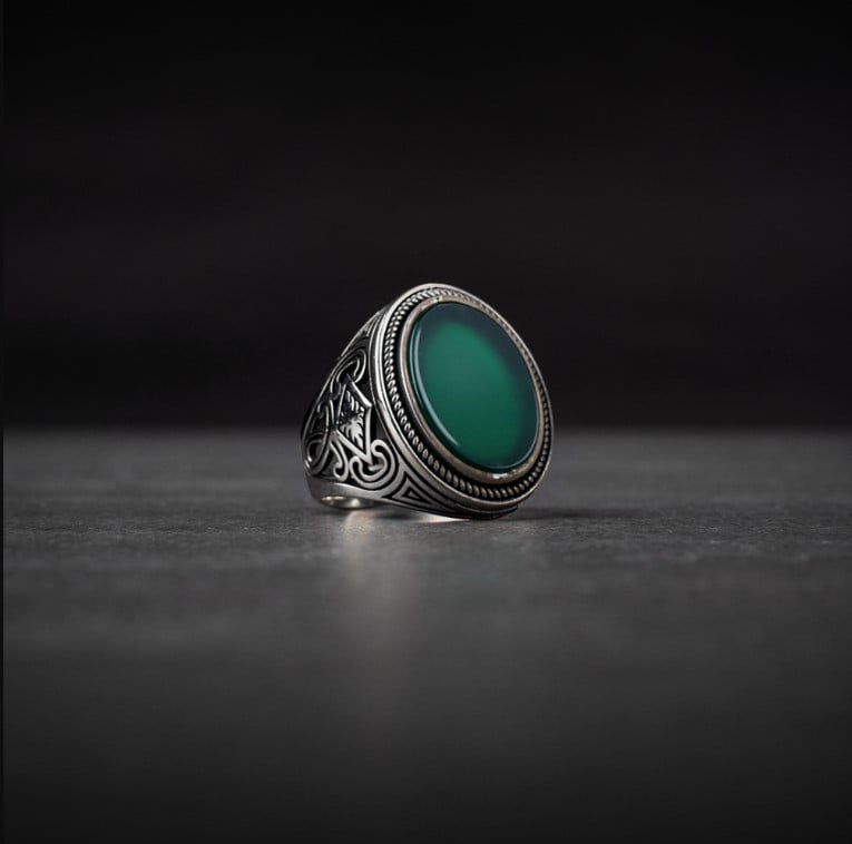 1. Men's Sterling Silver Ring with Green Agate Stone