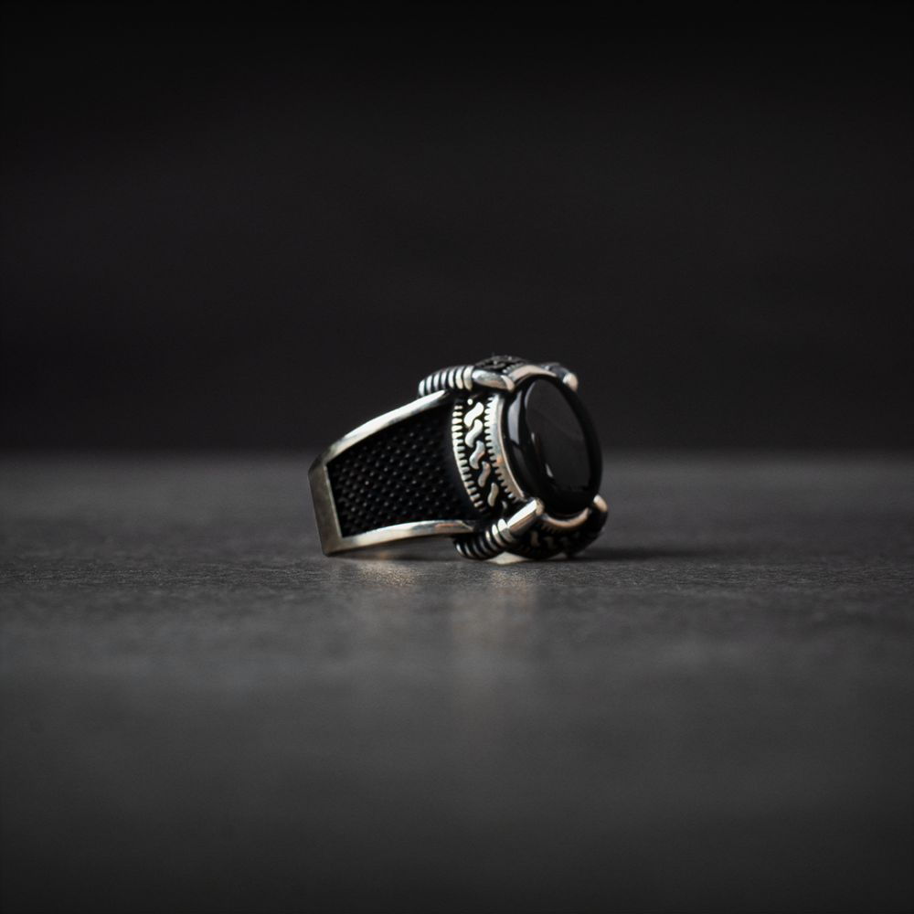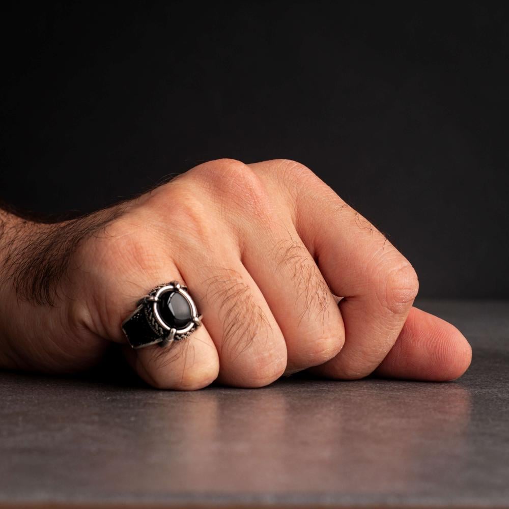 The silver ring is decorated with a black onyx stone, which reflects strength and mystery, and adds a touch of elegance to your look, so it is the perfect choice for those looking for distinction. It is not just a luxurious black men's ring ; it is an expression of your high taste.