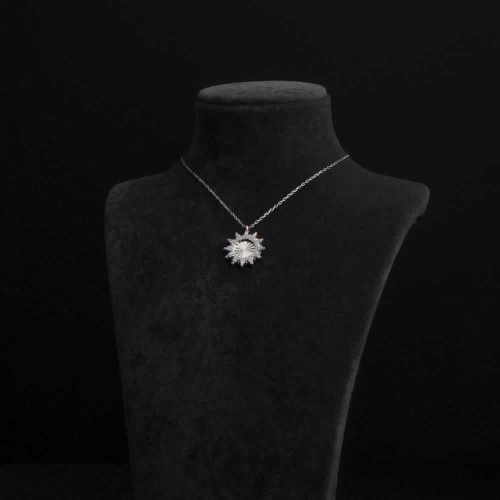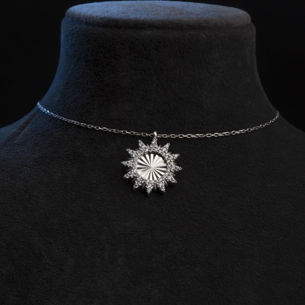 The distinctive sun design of this silver chain makes it a unique piece. Whether worn with a casual or formal look, the intricate sun detailing and sparkling zircon stone add a unique touch to your look.